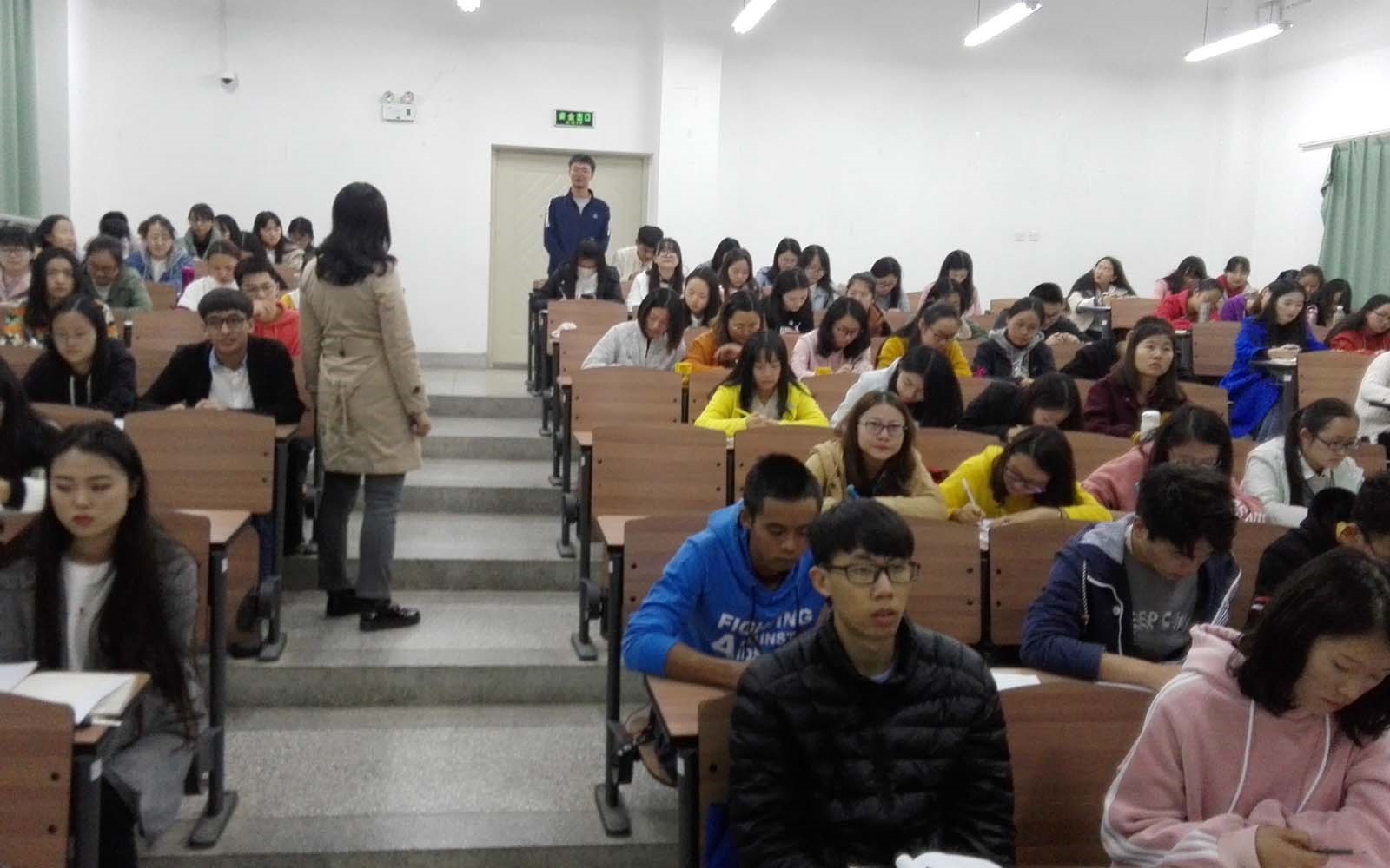 10月11日19:00在博雅楼3204,经济学院国际经济与贸易学生第二党支部书记冉萍为我院入党积极分子作了党的基本理论和基础知识培训党课。