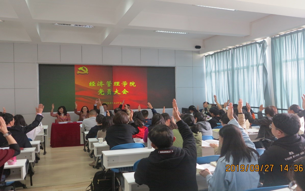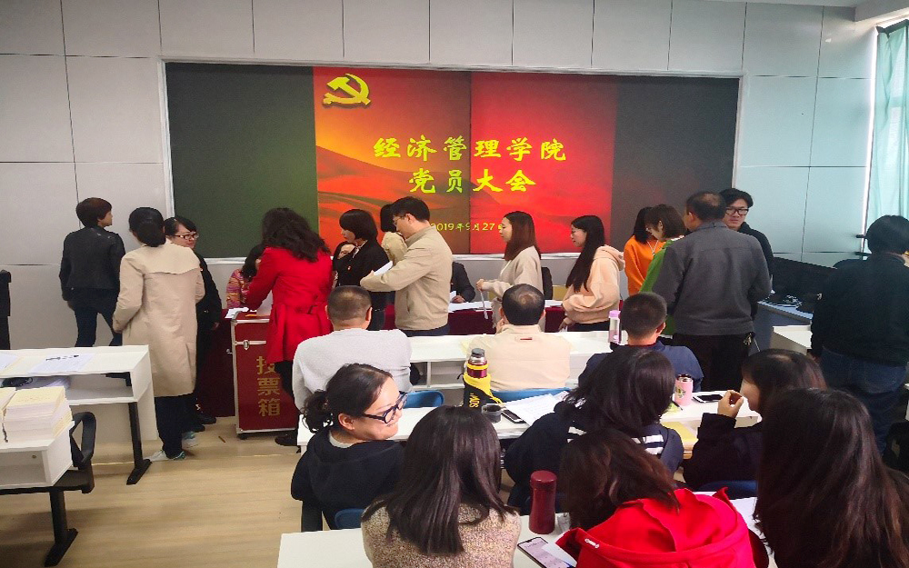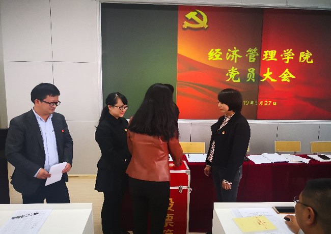 根据《中共beat365官方网站委员会关于设立部分二级单位党委的通知》(党发[2019]109号),二级单位党的委员会选举工作方案,依照《中共beat365官方网站委员会关于中共beat365官方网站经济管理委员会选举有关事项的批复》(党复〔2019〕22号)文件,2019年9月27日,beat365官方网站党委在惟行楼1301召开全院党员大会,选举beat365官方网站第一届党委委员。