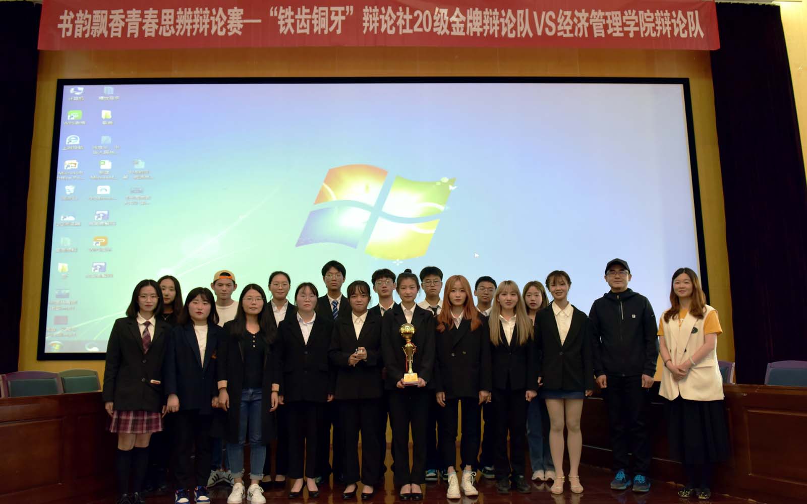 观众们也为辩手精彩的辩论送上了掌声。在辩手们精彩的论述后现场的评委也为此次比赛做出了公正评判。在评委王永昌老师进行点评后,本次比赛圆满结束。最终正方“铁齿铜牙”辩论社20金牌辩论队以94.17分赢得了本次辩论赛。
