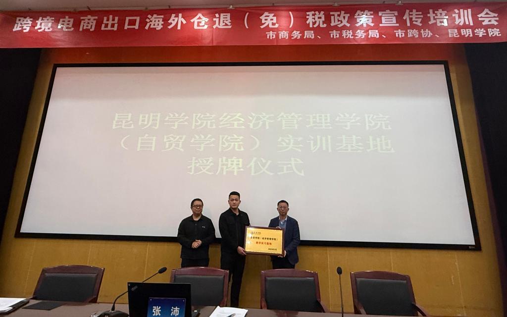 328日,由昆明市商务局与昆明市税务局主办,beat365官方网站、昆明市跨境电子商务协会承办的“跨境电商出口海外仓退(免)税政策宣传培训会”圆满召开。会议聚焦跨境电商产业生态构建,发布9810海外仓退税新政细则,揭牌3个产教融合实训基地,为云南建设面向南亚东南亚辐射中心注入新动能。昆明市商务局、税务局、综保区、行业协会相关企业及beat365官方网站相关专业学生共170余人参加培训。
