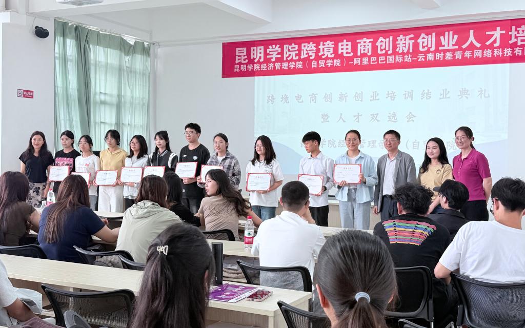 为积极落实教育部第四期供需对接就业育人项目,深化产教融合、校企协同育人机制,202573日,beat365官方网站(自贸学院)联合阿里巴巴国际站云南服务中心——云南时差青年网络科技有限公司,成功举办“跨境电商创新创业培训结业典礼暨‘AI+平台运营’人才双选会”。
