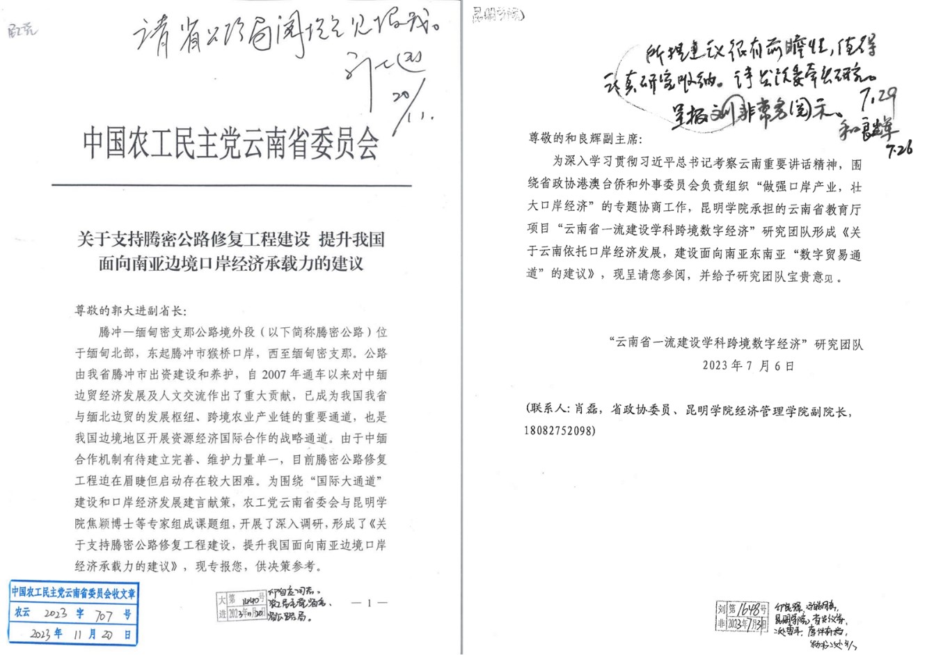 3.加强对外教育合作交流:与复旦大学联系,加入中国高校自贸区联盟;与对外经济贸易大学、自贸区昆明片区管委会联合召开《中老铁路发展报告2023》新闻发布会;举办“推进云南与周边国家跨境经济合作学术研讨会”;与老挝国立大学校领导座谈交流并实现互访,推动中老国际教育合作交流中心建设。